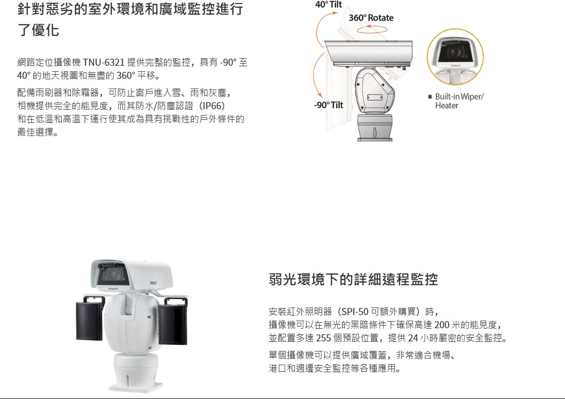 • 支援H.265、H.264、MJPEG 編解碼器 • 日夜 (ICR)、寬動態 (120dB)、除霧